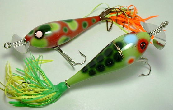 | 自分の通ってる某川で川下りをする時によく遭遇するシチュエーション・・・結構早い流れの中に無数の乱杭が何百メートルも延々と続いていて、とにかくテンポ良く投げていく必要がある。ノイジーは回収が大変だし、Wスイッシャーは流されてる途中に杭に引っ掛けると回収がメチャ大変・・・。バズベイトが最強っぽいけど、それも何だか味気無い・・・。 そんな場面で使えるサーチベイトが欲しくて生まれたのがこの楽器の琵琶の形をしたBiwaman(ビワマン)。マンズのFrogman(ネーミングはここから引用)と アーボガストのSpatter Buzzを足して2で割ったような感じでしょうか。 フロントに重いバズペラが付いているルアーにしては珍しく、浮き角度を若干テイルを沈めた位に設定してるんで、ペラの立ち上がりは良好です。また、ボディはフッキングを損ねない程度に扁平に削られているため、リトリーブ時のボディの回転と障害物への引っ掛かりを抑えます。また、ペンシル程では無いにしろ、ちゃんとスライドもこなしてくれるんで、意外にピンスポットでも使えそうです。 とにかく、自分勝手な要求がたくさん詰まったルアーです。 |