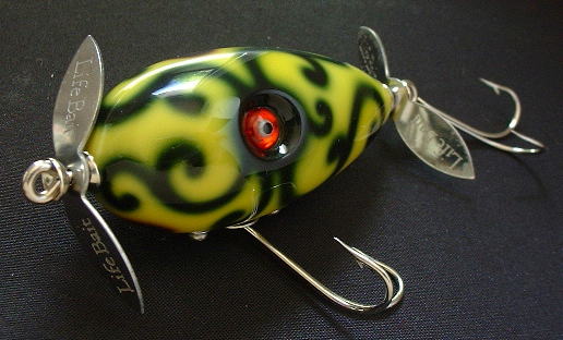 | ライフ○イトの新作Wスイッシャー…ではなくて(パーツ取りしただけです)、とにかくピンスポットでネチっこく動かせる小さめのWスイッシャーが欲しくて作った一点モノです。 比重の軽い桐材を使ったファットで寸詰まりなボディに、割と重めのウェイトを仕込んだことによって、移動距離が極少のターンをキビキビと決めてくれます。 その名の通り(BOA Special = 某川Aスペシャルの略です)、ブッシュが多くて、水がマッディで、魚のアベレージが小さめの某川Aでの活躍を使命として生まれたルアーですが、野池なんかでもかなり効きそうです。 |