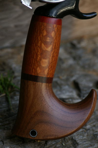 | ■グリップエンド:ブラックウォールナット ■フロントグリップ:栃杢(トチモク) ■フロントスペーサー:*** ■センタースペーサー:ゼブラウッド (5mm厚) ※各素材の詳細について→Click |