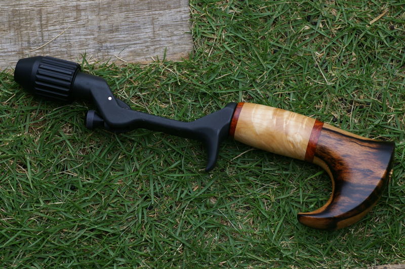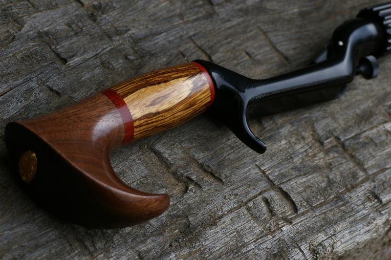 | ■グリップエンド:黒柿 ■フロントグリップ:栃杢 ■フロントスペーサー:花梨瘤 (4mm厚) ■センタースペーサー:花梨瘤 (5mm厚) ※各素材の詳細について→Click |