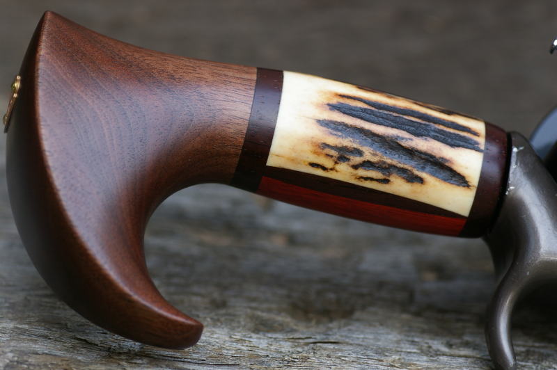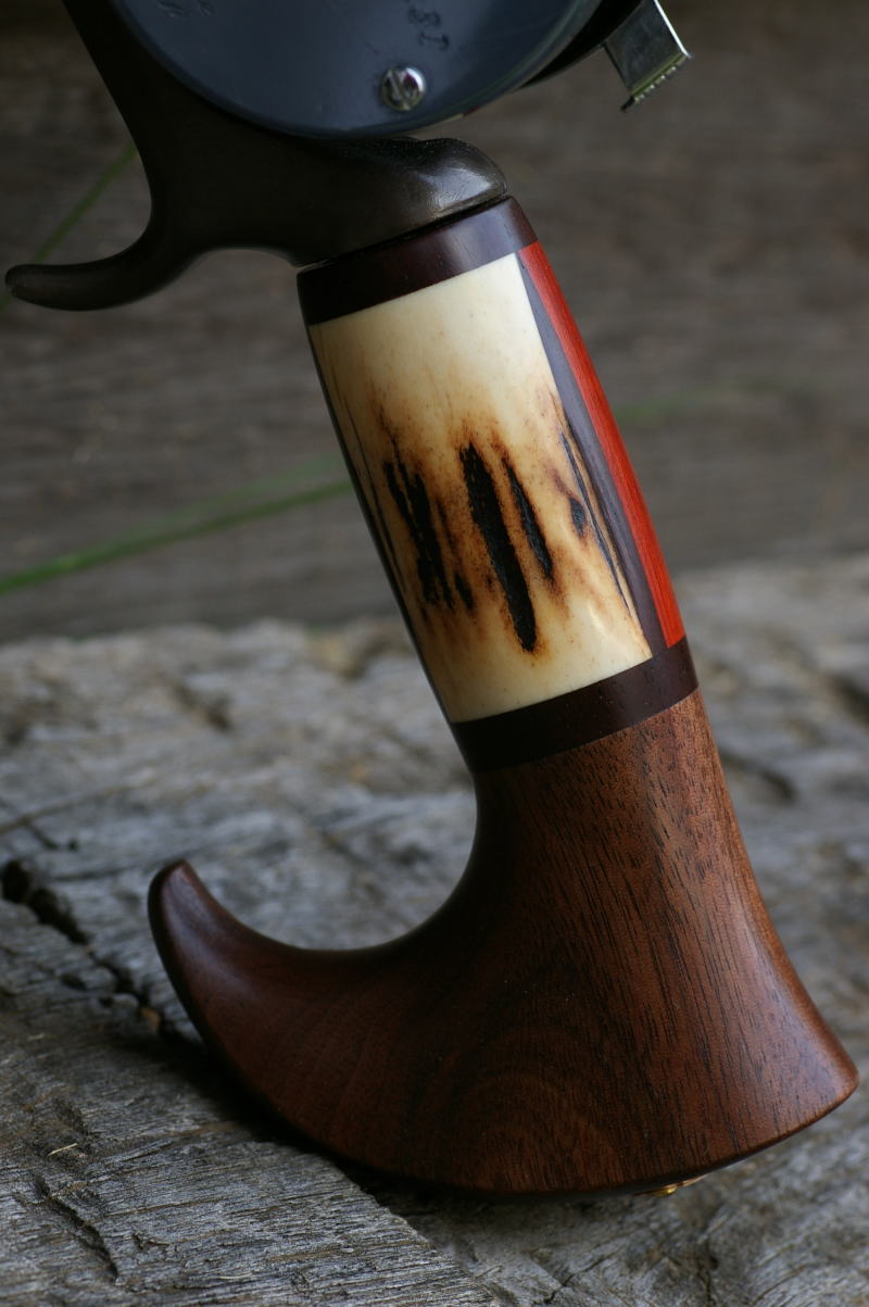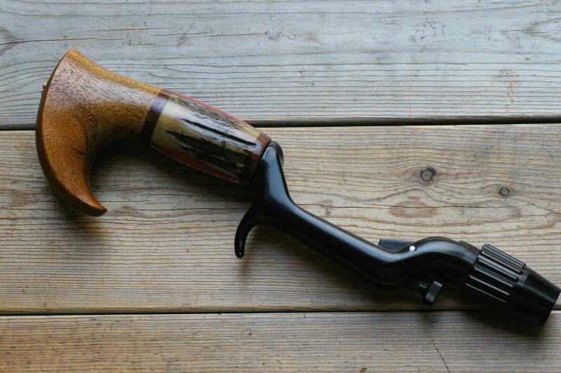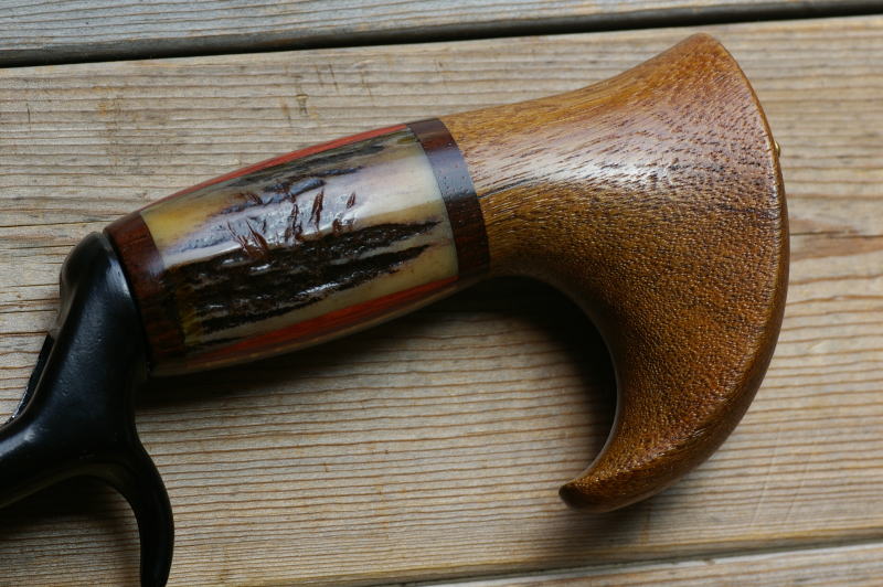| ■グリップエンド:ブラックウォールナット ■フロントグリップ: スタッグ(鹿の角)、サティーネ(芯材) 黒檀(エッジスペーサー) ■フロントスペーサー:ローズウッド(5mm厚) ■センタースペーサー:ローズウッド(5mm厚) ※各素材の詳細について→Click |