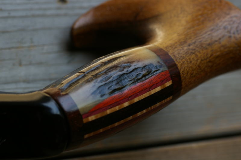 | ■グリップエンド:チーク ■フロントグリップ: スタッグ(鹿の角)、黒檀(芯材)、栃杢、パープルハート、サティーネ(エッジスペーサー) ■フロントスペーサー:ローズウッド(5mm厚) ■センタースペーサー:ローズウッド(5mm厚) ※各素材の詳細について→Click |