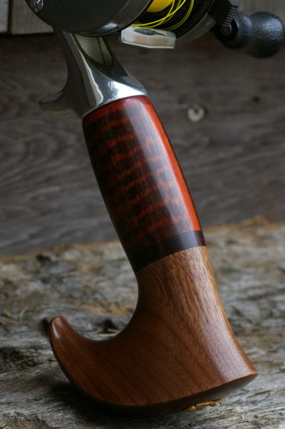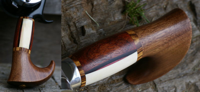 | ■グリップエンド:ブラックウォールナット ■フロントグリップ:スネークウッド、サティーネ(芯材) ■フロントスペーサー:花梨 (3mm厚) ■センタースペーサー:ローズウッド (5mm厚) ※各素材の詳細について→Click |