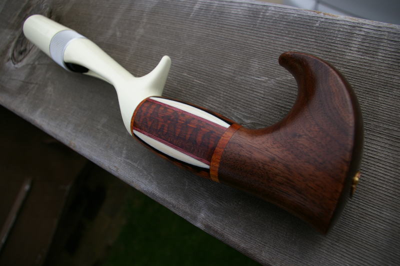 | ■グリップエンド:ブラックウォールナット ■フロントグリップ: スネークウッド、アイボリー 黒壇(エッジスペーサー) パープルハート(エッジスペーサー) ■フロントスペーサー:花梨(3mm厚) ■センタースペーサー:花梨(4mm厚) ※各素材の詳細について→Click |
