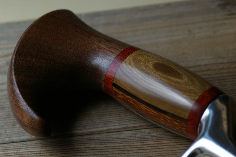 | ■グリップエンド:ブラックウォールナット ■フロントグリップ: 花梨瘤紅白(ベース材) パープルハート(エッジスペーサー・外) サティーネ(エッジスペーサー・内) ■フロントスペーサー:ゼブラウッド (5mm厚) ■センタースペーサー:ゼブラウッド (5mm厚) ※各素材の詳細について→Click |