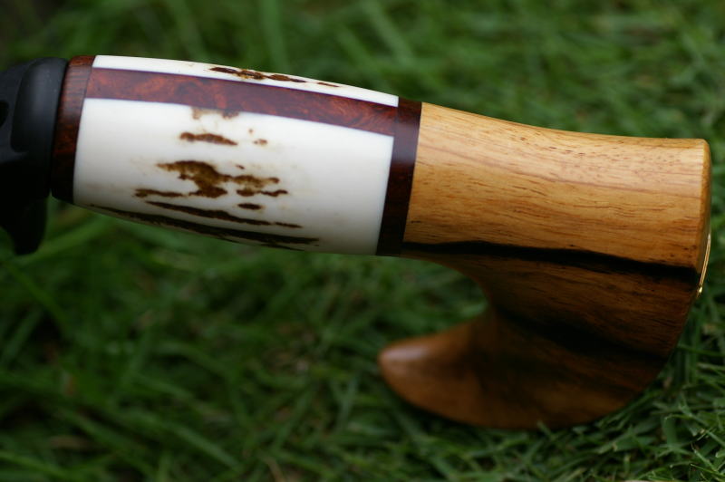 | ■グリップエンド:黒柿 ■フロントグリップ ベース:スタッグ 芯材:花梨瘤 ■フロントスペーサー:ローズウッド(4mm厚) ■センタースペーサー:ローズウッド(4mm厚) ※各素材の詳細について→Click |