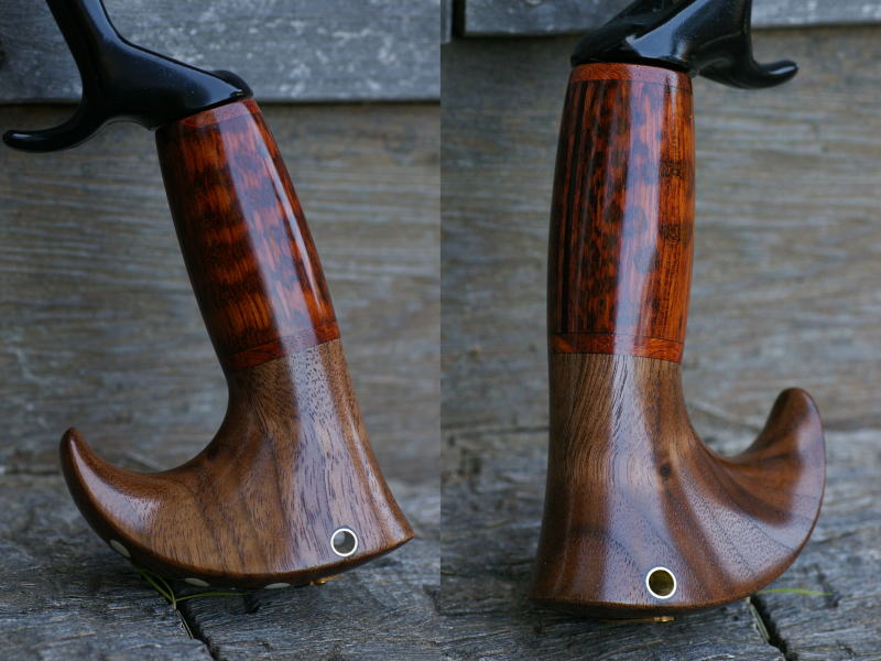| ■グリップエンド:ブラックウォールナット ■フロントグリップ ベース:スネークウッド バックライン:黒檀・花梨 ■フロントスペーサー:花梨(4mm厚) ■センタースペーサー:花梨(4mm厚) ※各素材の詳細について→Click |