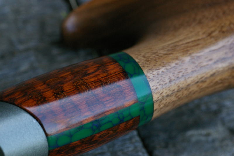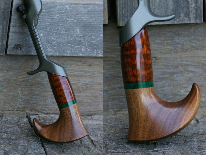 | ■グリップエンド:ブラックウォールナット ■フロントグリップ ベース:スネークウッド ■センタースペーサー:ターコイズグリーン(5mm厚) ※各素材の詳細について→Click |