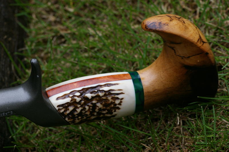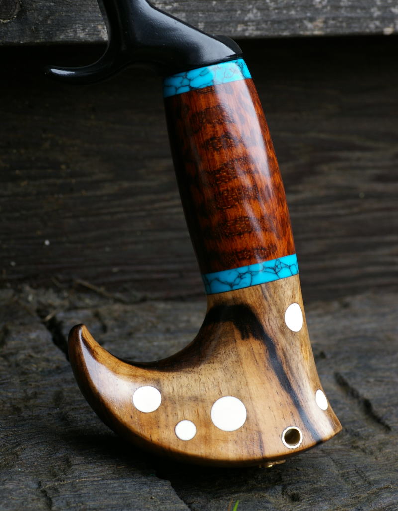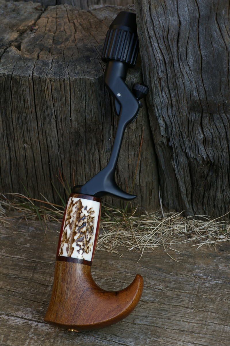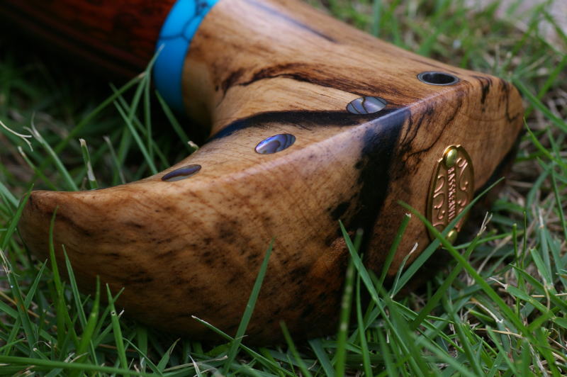 | ■グリップエンド:黒柿 ■フロントグリップ ベース:スタッグ バックライン:花梨瘤 ■センタースペーサー:ターコイズグリーン(5mm厚) ※各素材の詳細について→Click |