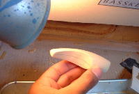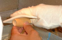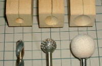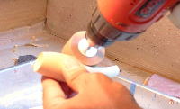 Eいよいよボディの成形に入ります。まずは、ポッパーですので、カップを彫ります。ドリルのチャックを変えて徐々にカップを大きく彫っていきます。 |