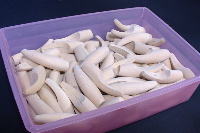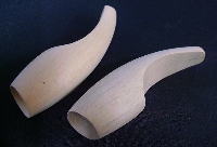 Hまず大きく角を落としてから、頭〜テイルのテーパーを付けて、そして角を徐々に落として丸く削っていきます(画像左→右)。左右対称になるよう、できるだけ平らな面を残さないよう削る必要がありますが、とにかく集中力のいる作業です。昔は一つ削るのに30分位掛かってましたが、今では馴れたもので、10分位で削ってしまいます。 |